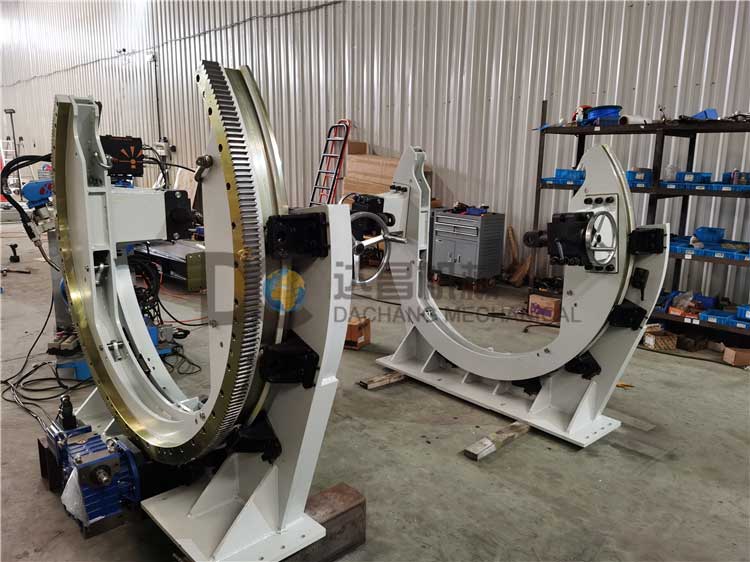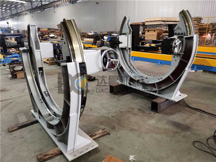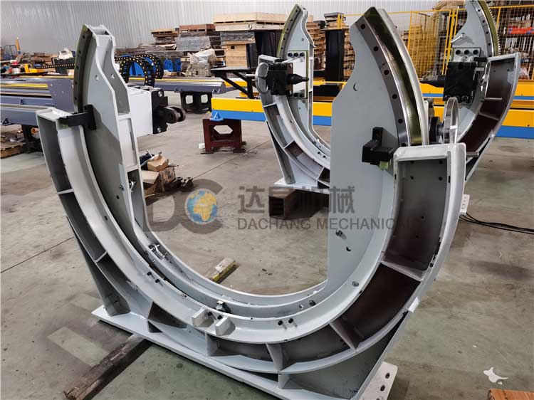 C型變位機又名滾轉機適用于長條形工件的自動化夾緊定位,可配合機器人實現自動化組對和焊接。