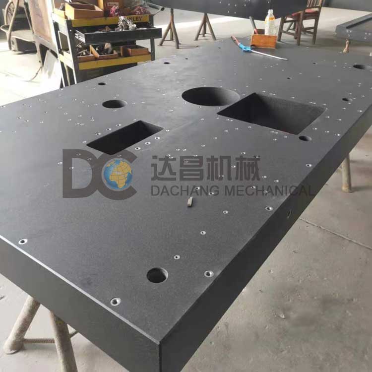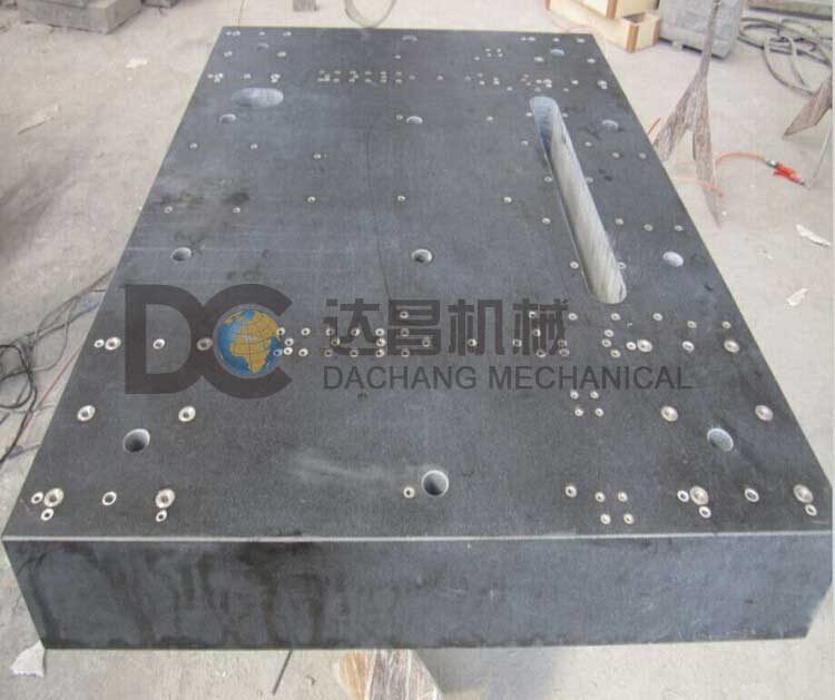 大理石底板的工作面上多布置有螺紋孔或通孔,還有一些客戶會要求在大理石底板工作面開槽,這些都是應客戶要求加工的。大理石底板加工前需要提供圖紙,可以是用戶自行設計提供圖紙,也可以由用戶描述具體要求,供應商設計圖紙。